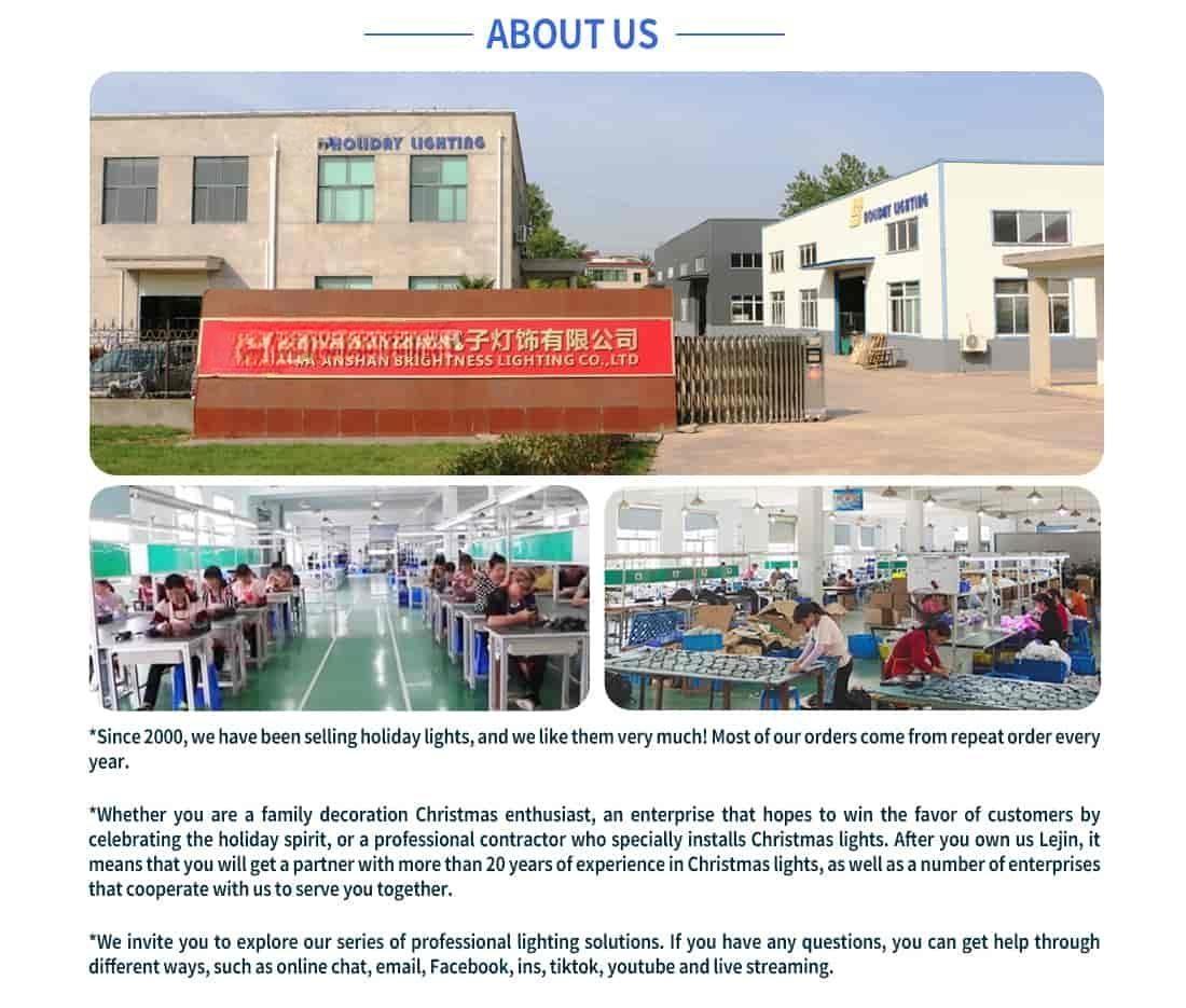 Our light strings include PVC wire strings, which have good safety and durability. They have CE, RoHS, GSSAA and PSE certificates. LED lights consume less, are brighter, have a longer life, purer color, and have better cold resistance and high temperature resistance.