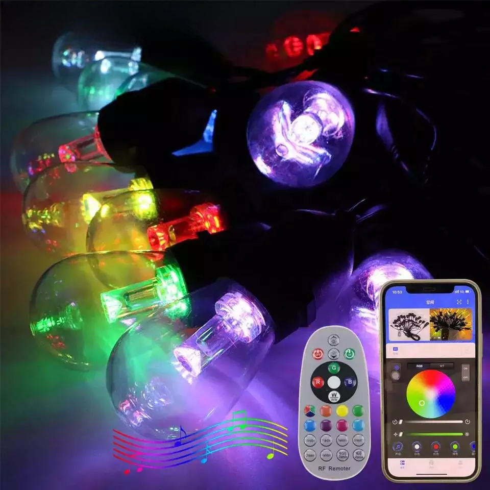 Adopting the most advanced LED chip technology, this LED RGB string lights glow in colorful light through clear bulbs (unlike other filament colored string light that is just white light through colored casing). It will create the best mood and aesthetic light show for any patio, deck, backyard, porch, cafe, party, holidays and more.