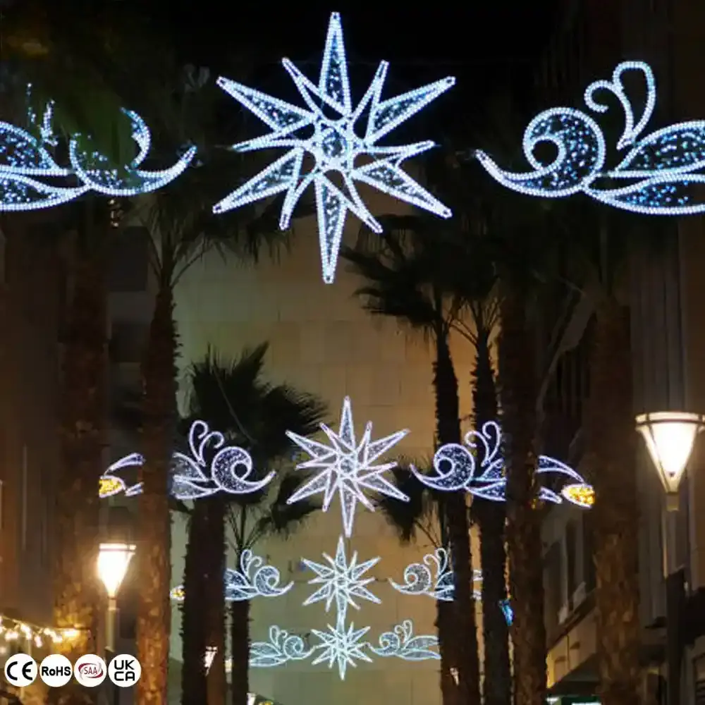 - Our street 2D lighting motifs boast a diverse range of themes.When you take a walk on the commercial street in the downtown area at night,you can vividly experience the colorful and festive atmosphere.These decorative lights possess excellent waterproof performance and can operate normally even in regions with frequent rain and snow.Additionally, the lamps have strong heat resistance and can function flawlessly in hot summers.Most crucially, these decorative lights have a long service life,low power consumption and are environmentally friendly.Thus, you don’t have to worry about increased costs caused by damage and you can thoroughly enjoy the pleasure that these lamps bring on countless nights.