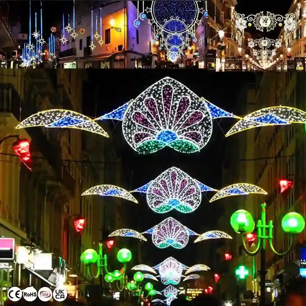Dreamy butterfly-shaped street decoration LED motif.These uniquely shaped lighting fixtures are suitable for streets and green belts,adding a touch of festive joy and vitality to the streets and green belts.With rich colors and shapes,there is always the best lighting choice for your space.Whether it’s a park, residential area,shopping mall or commercial street,there is always one that will add interest to your life.These products are not only colorful but also rich in function types,providing an immersive experience for tourists. No matter where they are installed,these lamps will become the center of attention and attract customers to take pictures.