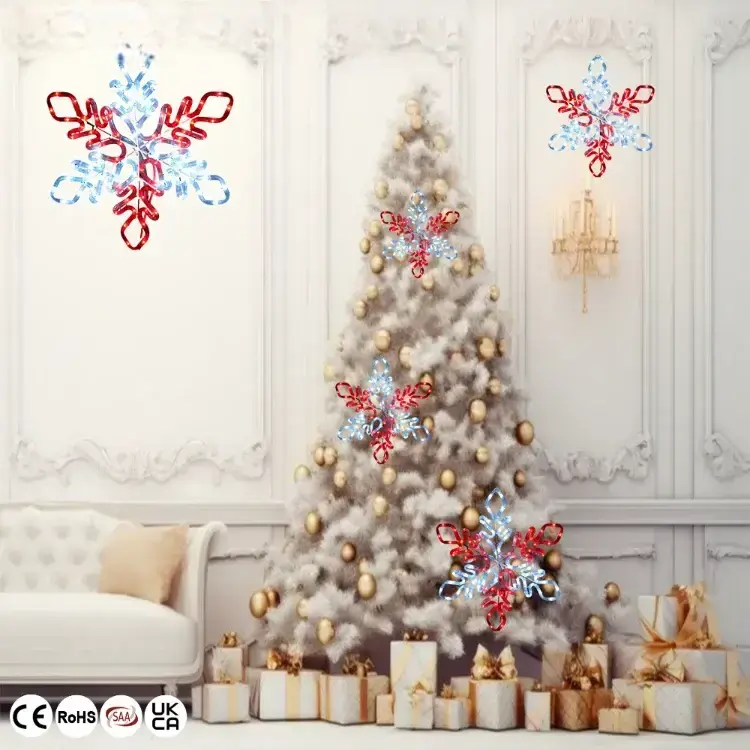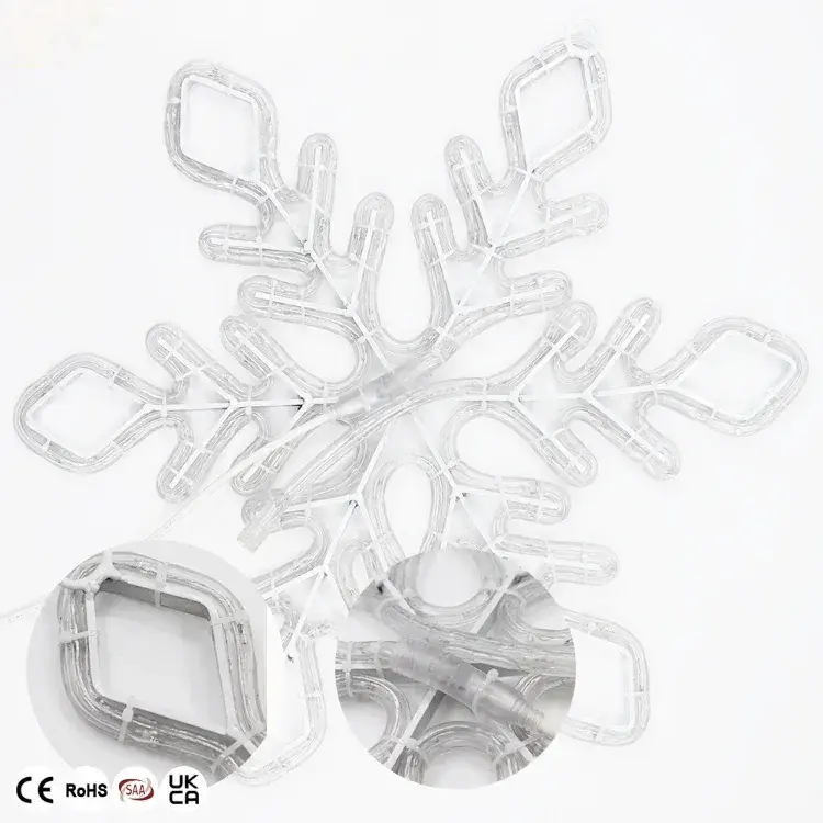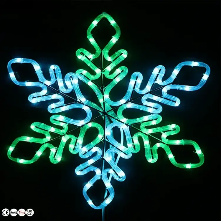 We use high-quality led rope light and painted iron frames to ensure product durability and safety. LED lamp beads have long life characteristics, with an average service life of tens of thousands of hours. - What is the scope of application of LED 2D Snowflake motif light?