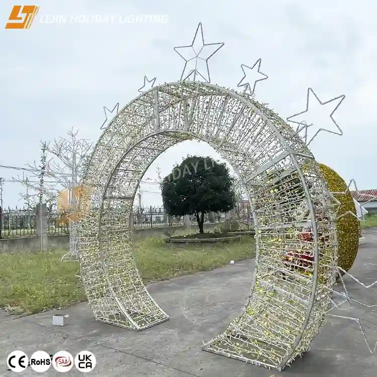 2.IP65 advanced waterproof design, effective resistance to rain and snow, whether it is outdoor gardens, parks or commercial blocks, can ensure the LED 3D arch in a variety of weather conditions stable light.