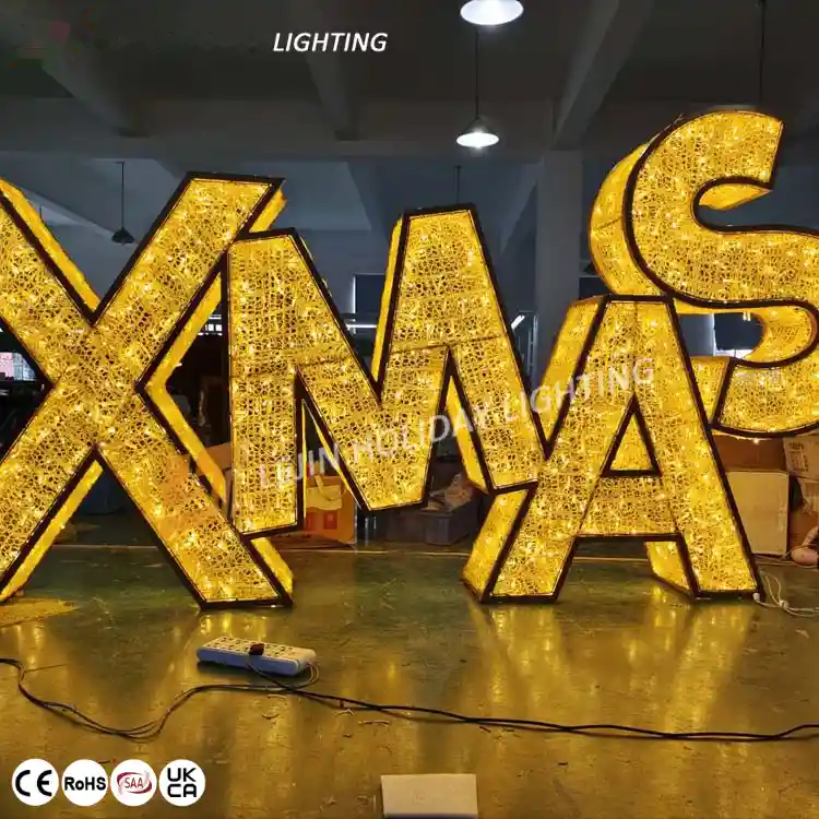 3D Christmas letter motif light, it has excellent quality. The material is strong and long-lasting, which is suitable for long-term use. Whether it is used in commercial places or private places, it can reach perfect effects. It is totally waterproof, so it can be used no matter indoors or outdoors. This product can create a good christmas atmosphere, choose our product to add light and magic to your holiday.