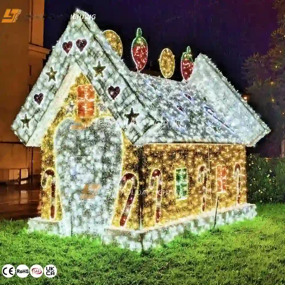 1. Our house-themed 3D motif lights are colorful and have a dreamy effect. They are an excellent choice for decorating streets and squares, enabling tourists to be immersed in them and reluctant to leave.