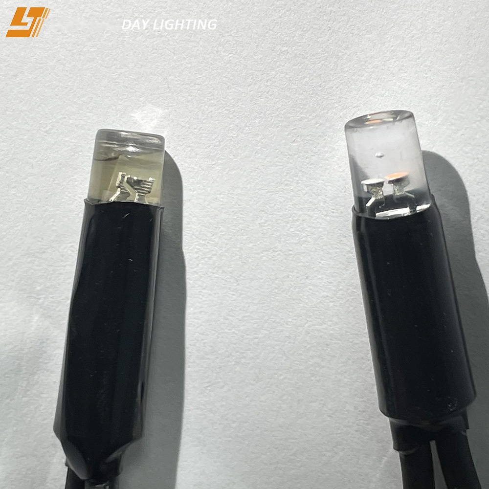 2、On the right is the lamp bead of our electrodeless lamp string. You can see that the two chips are the same size. The lamp string can be directly lit and connected regardless of the electrode.