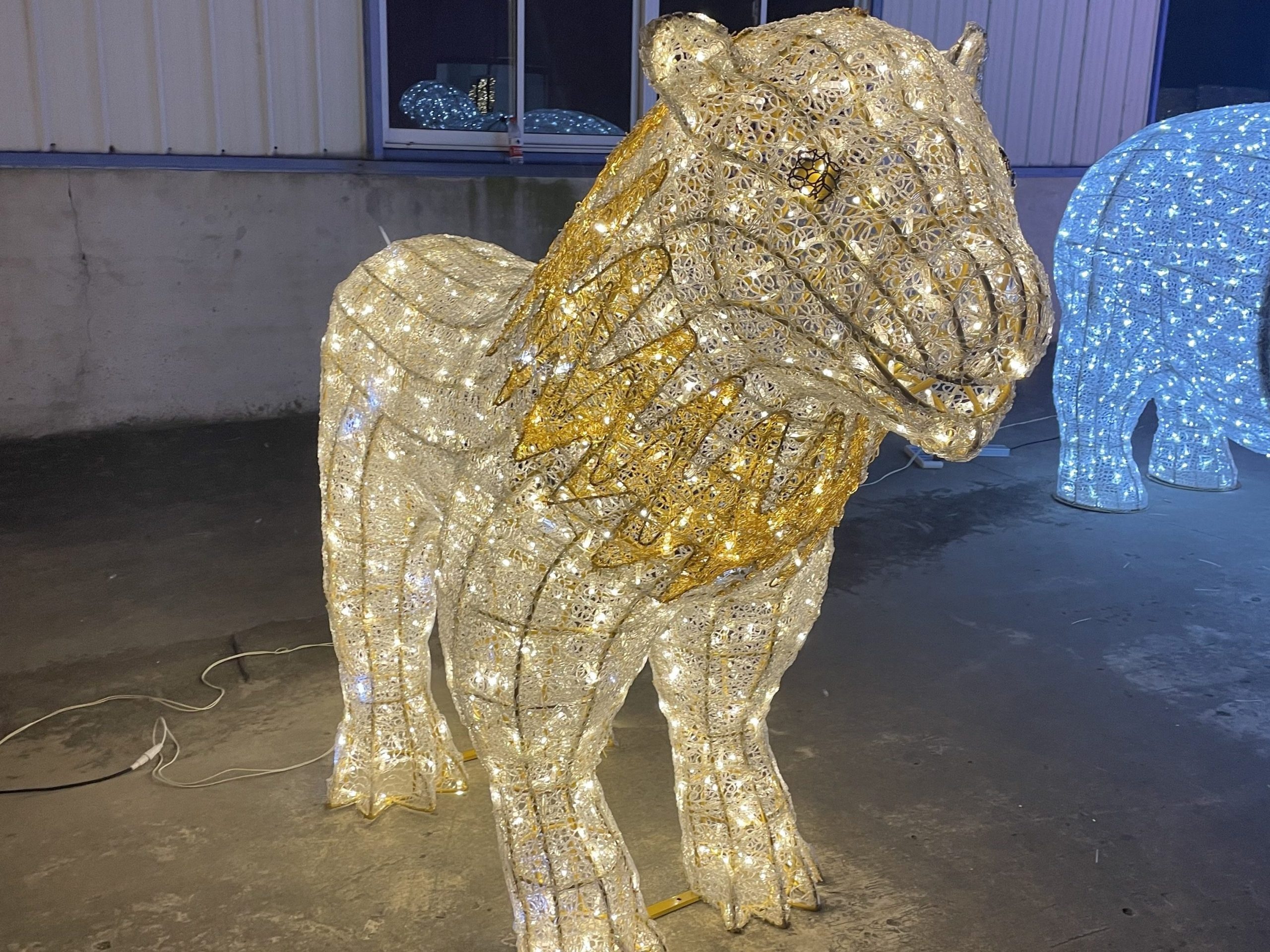 As for the support part of the motif light, we use the aluminum frame. The aluminum material has a light weight, but it has a good load-bearing capacity; Moreover, it is easy to install and disassemble, and the quality is well guaranteed.