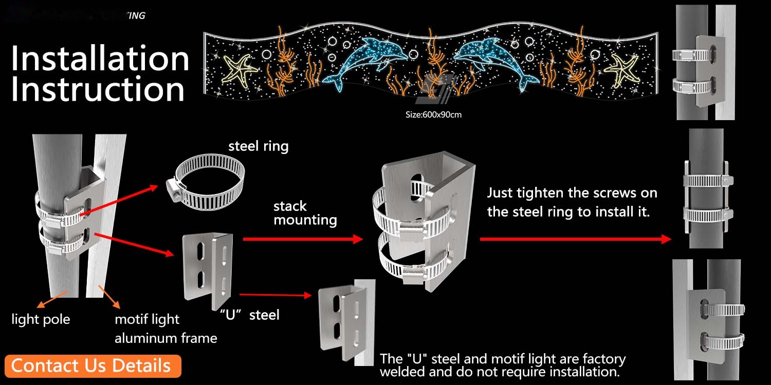 The motif light of this product has fully considered the convenience of customers in its installation design. Specifically, it adopts a steel ring and “U” steel combination installation scheme. This modular design significantly simplifies the installation process: simply align the “U” steel precisely, then quickly snap it into place using the steel ring, and the assembly can be completed without the need for complex tools. Even novice operators can quickly get the hang of it.