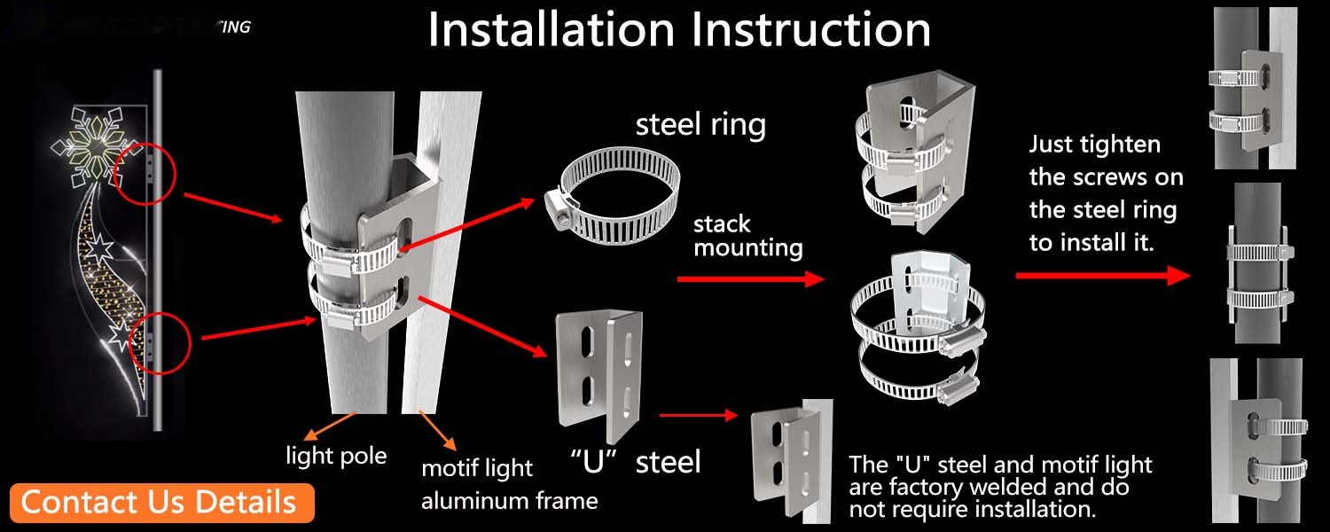 The motif light of this product has fully considered the convenience of customers in its installation design. Specifically, it adopts a steel ring and “U” steel combination installation scheme. This modular design significantly simplifies the installation process: simply align the “U” steel precisely, then quickly snap it into place using the steel ring, and the assembly can be completed without the need for complex tools. Even novice operators can quickly get the hang of it.