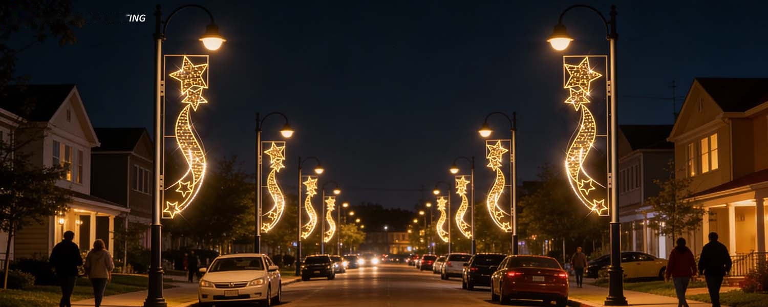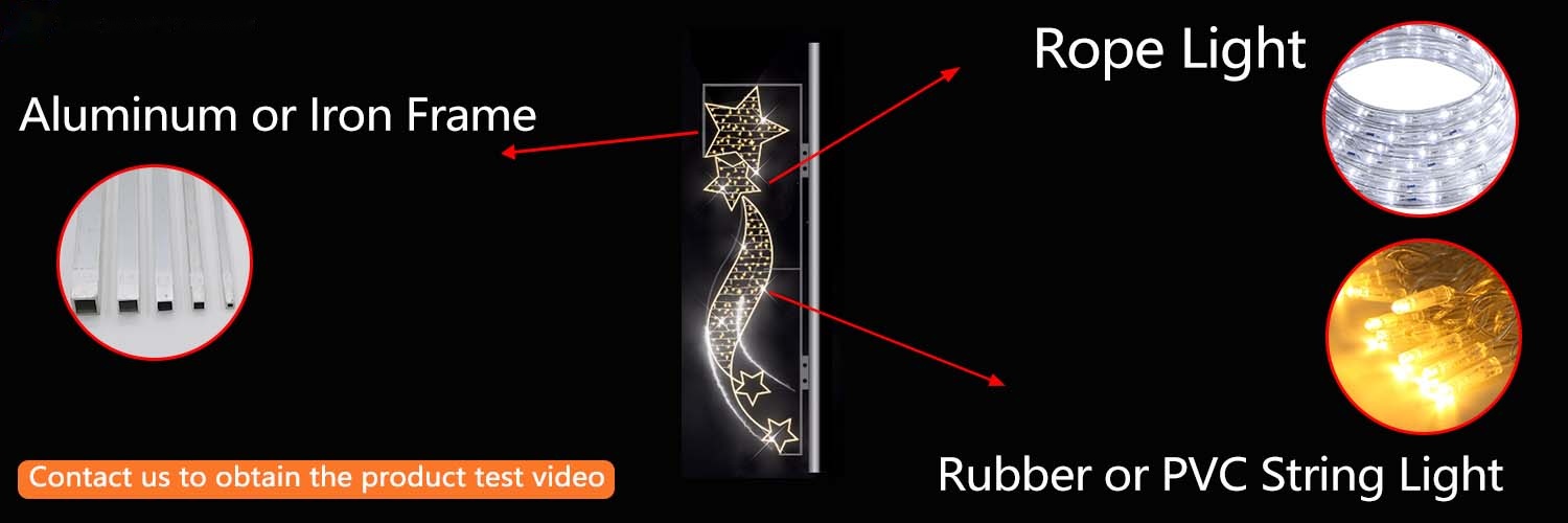 To precisely meet the market’s demand for product iterations and establish core differences from similar products, we have implanted a groundbreaking flashing function or customized functions into this flagpole lamp, redefining the interactive experience of holiday decorations. Unlike the stereotypical presentation of traditional static light strings, when the pole is hung, there are flashing effects or other customized effects injected into the decorative street, becoming a dynamic focal point; when arranged in multiple groups, like the rhythm of a Christmas carol flowing above the street, it completely breaks the predicament of “homogeneous light effects” of similar products. Combined with various decorative light shadows, dynamic and static visual collisions, each street’s Christmas atmosphere has acquired a unique memory point, truly achieving “instant recognition, unforgettable” market competitiveness.