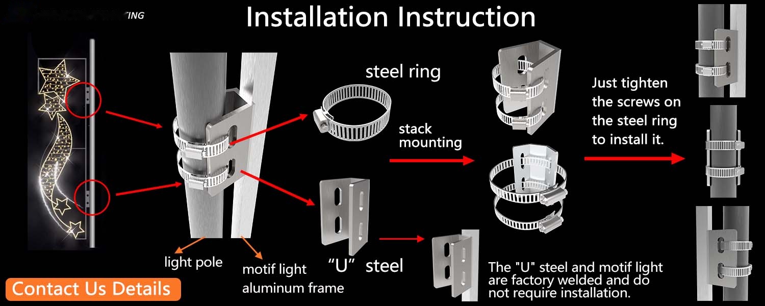The motif light of this product has fully considered the convenience of customers in its installation design. Specifically, it adopts a steel ring and “U” steel combination installation scheme. This modular design significantly simplifies the installation process: simply align the “U” steel precisely, then quickly snap it into place using the steel ring, and the assembly can be completed without the need for complex tools. Even novice operators can quickly get the hang of it.