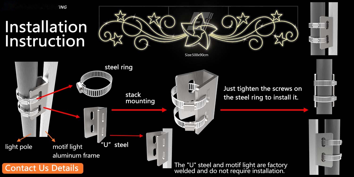 The motif light of this product has fully considered the convenience of customers in its installation design. Specifically, it adopts a steel ring and “U” steel combination installation scheme. This modular design significantly simplifies the installation process: simply align the “U” steel precisely, then quickly snap it into place using the steel ring, and the assembly can be completed without the need for complex tools. Even novice operators can quickly get the hang of it.