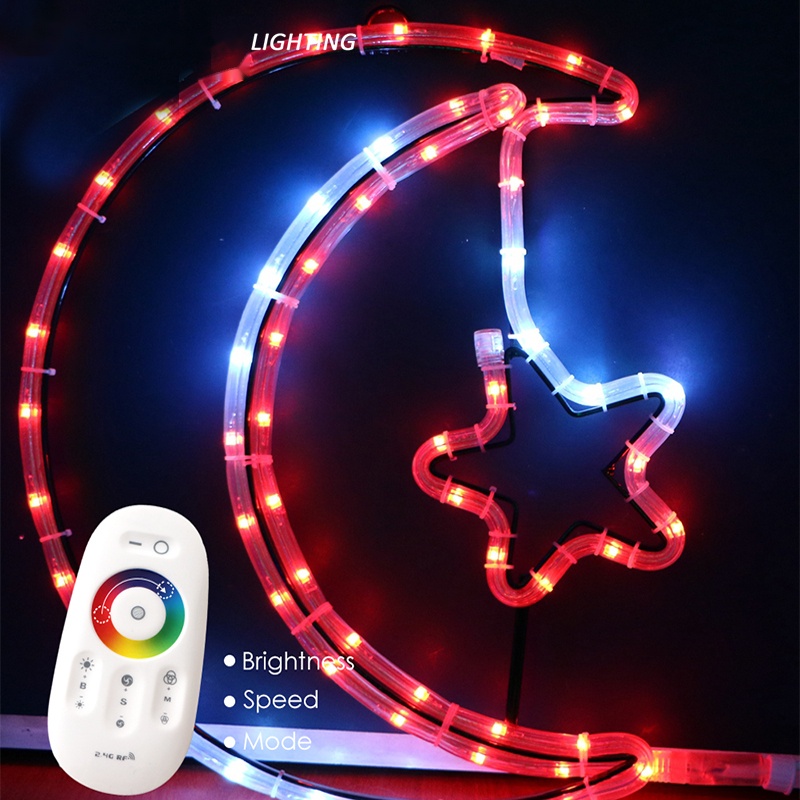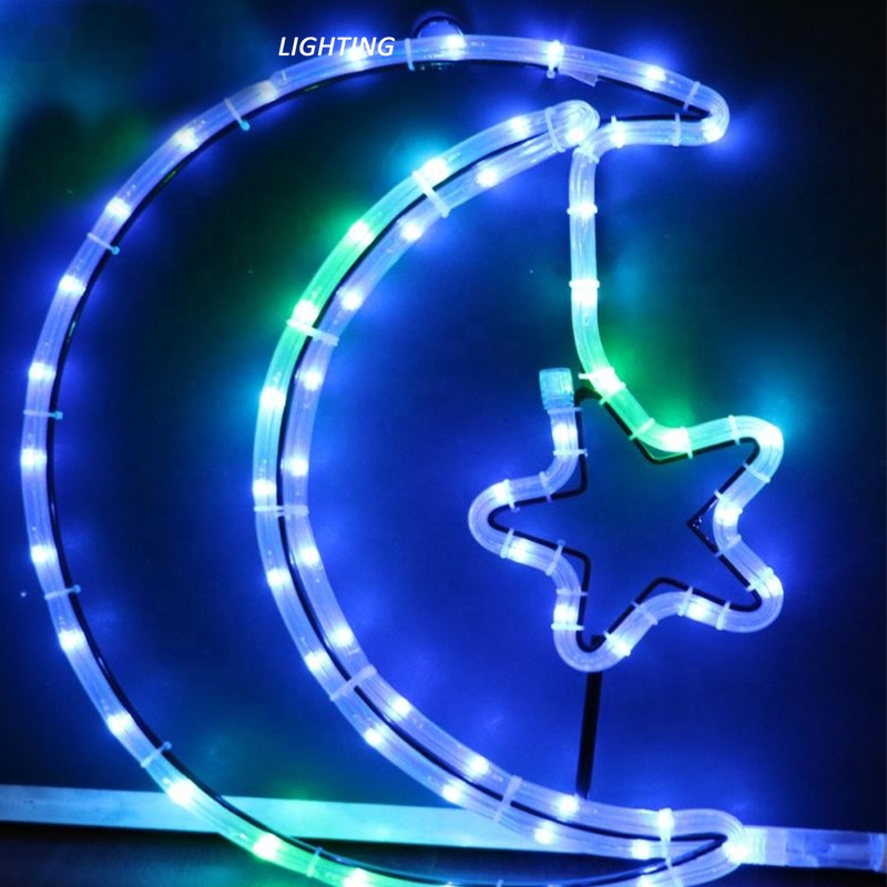 Outdoor decoration 2D smart LED star moon motif light for Ramadan decoration