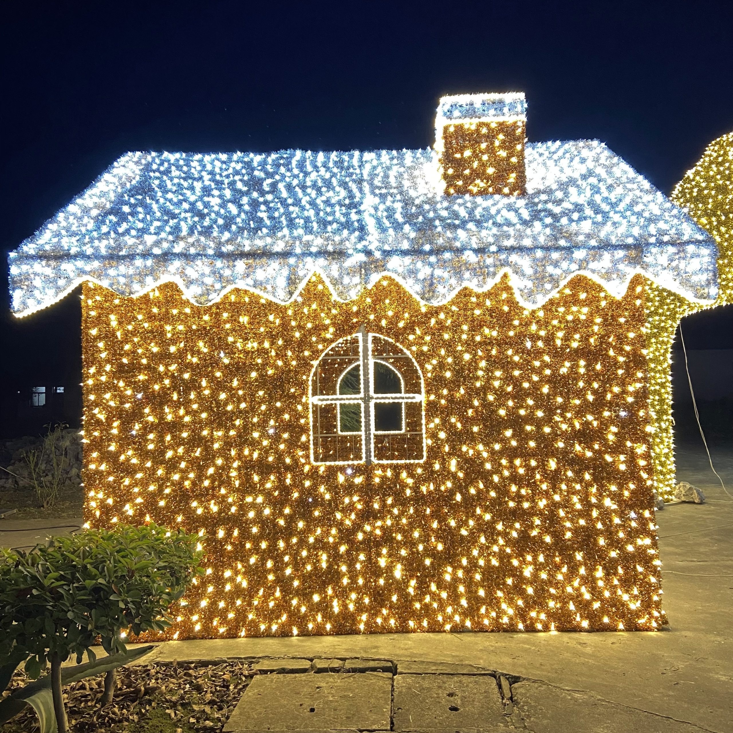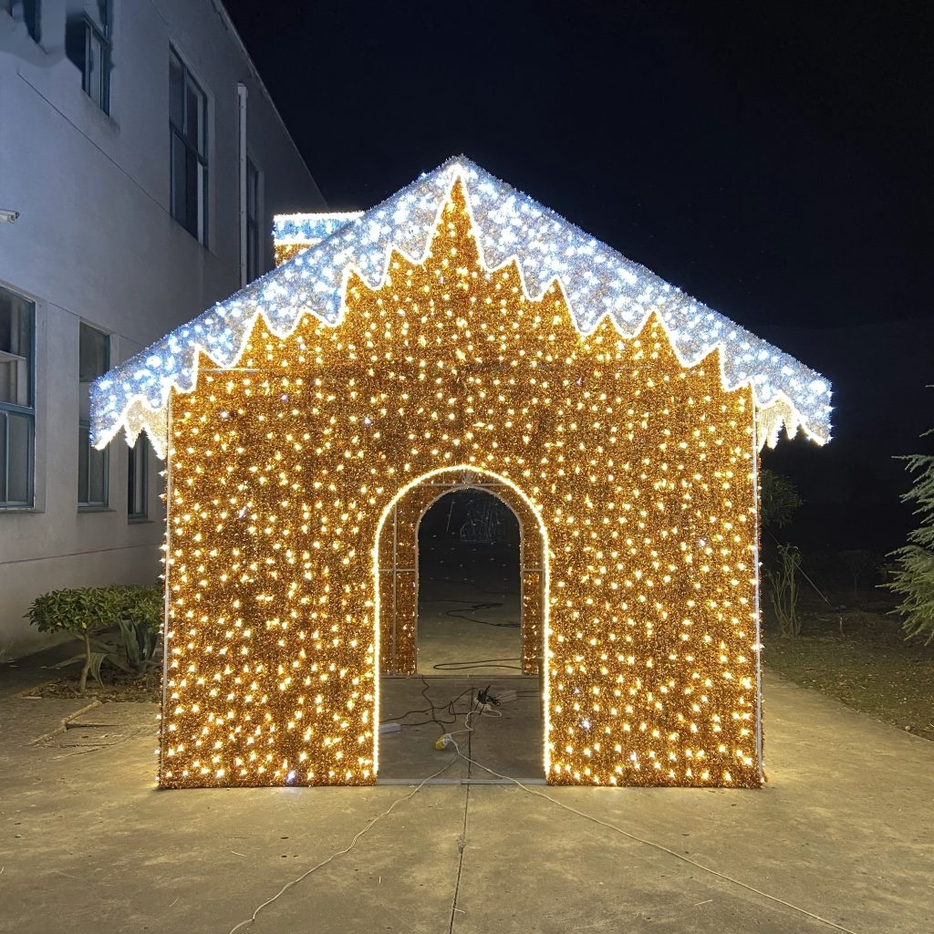 Outdoor large street decoration 3D flashing LED chimney house motif light